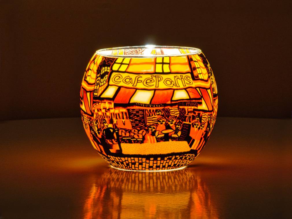 Leuchtglas 11cm Nr.576 französisches Flair in einem Cafe in Paris