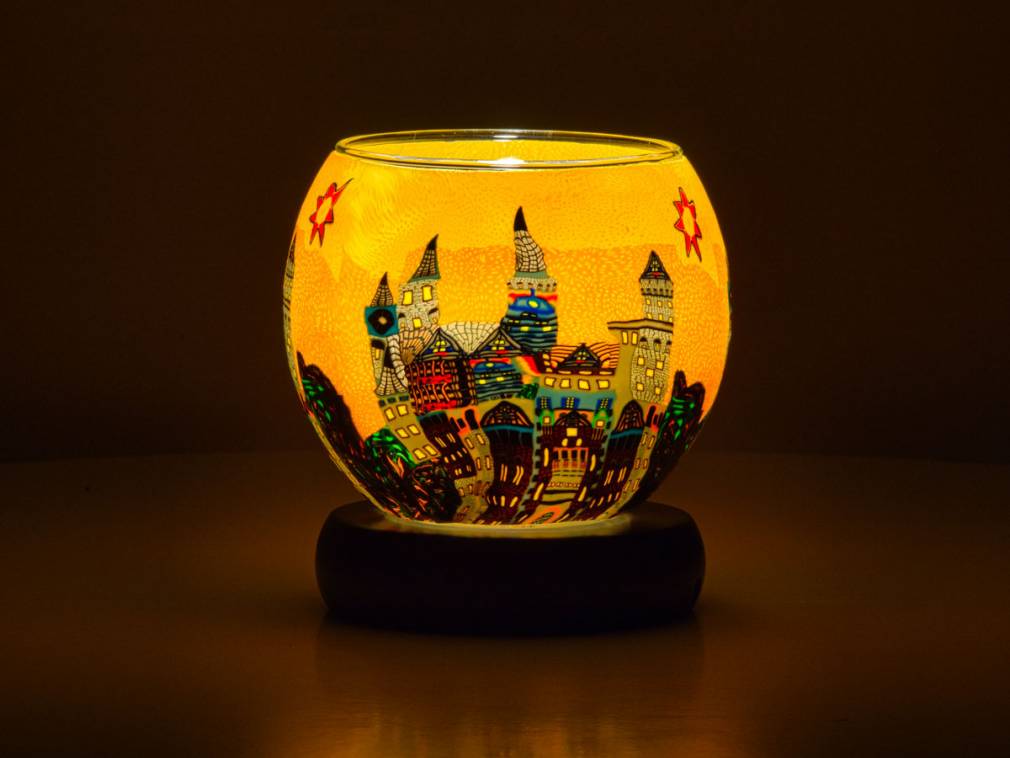 Die Motive der bunten und farbenfrohen Leuchtgläser werden per Handarbeit hergestellt und auf das Leuchtglas aufmodelliert.