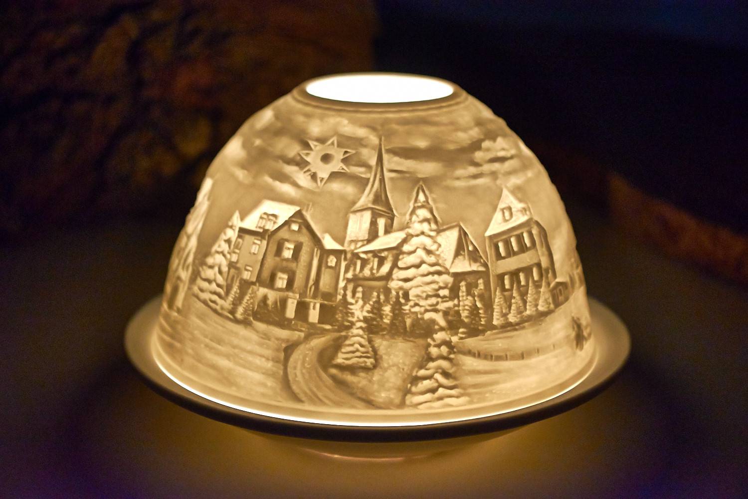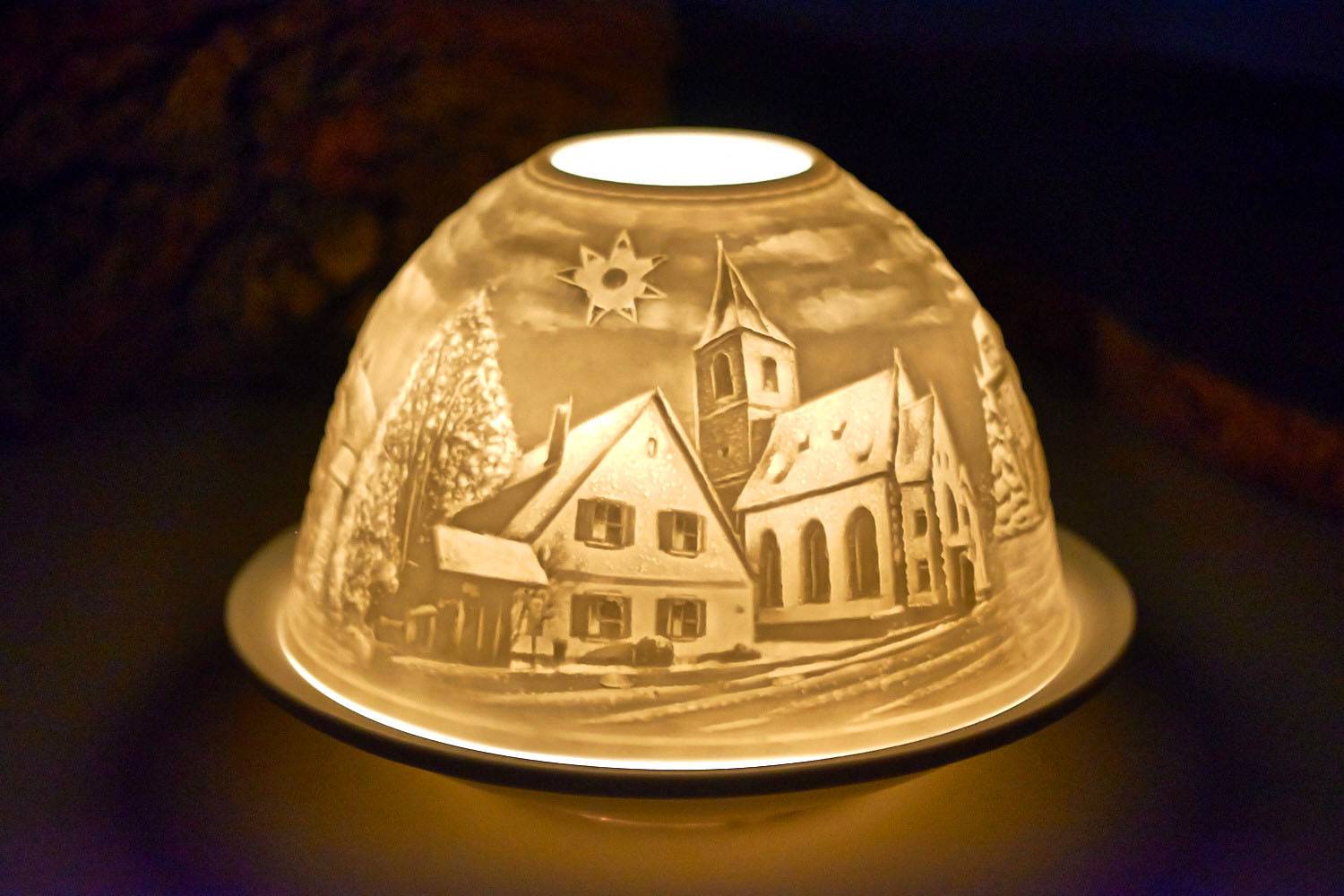 Bitte beachten Sie, dass die Starlights beim Fotografieren in Studioumgebung zur besseren Erkennung der Motive mit einer elektrischen Lampe beleuchtet wurden. Beim Beleuchten mit einem Teelicht, ist diese nicht ganz so hell, wirkt dafür lebendiger und verbreitet einen gemütliche Atmosphäre. Weiterhin weisen wir darauf hin, dass die Motiver rundherum gestaltet sind und auf unseren Bildern immer nur ausschnittsweise zu sehen sind.