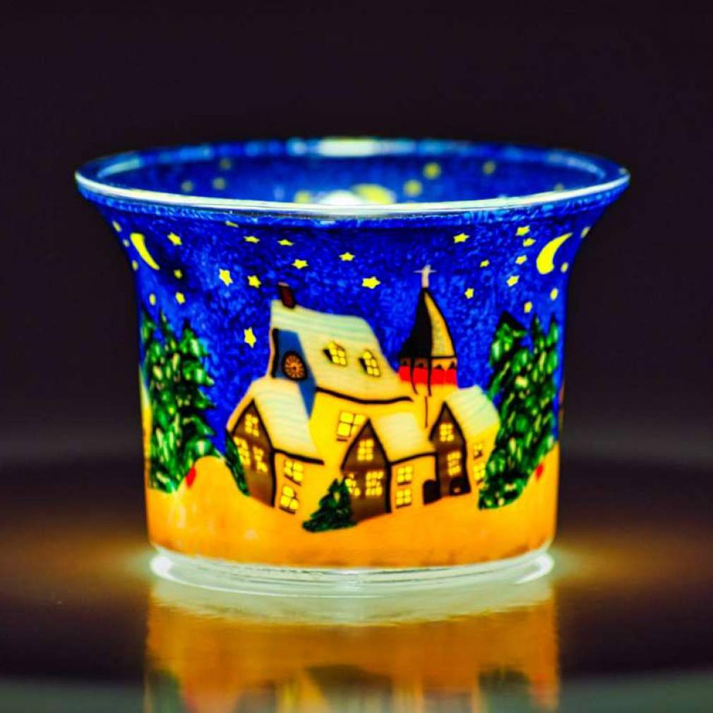 Votiv Glas Nr.591 - Winterdorf bei Nacht
